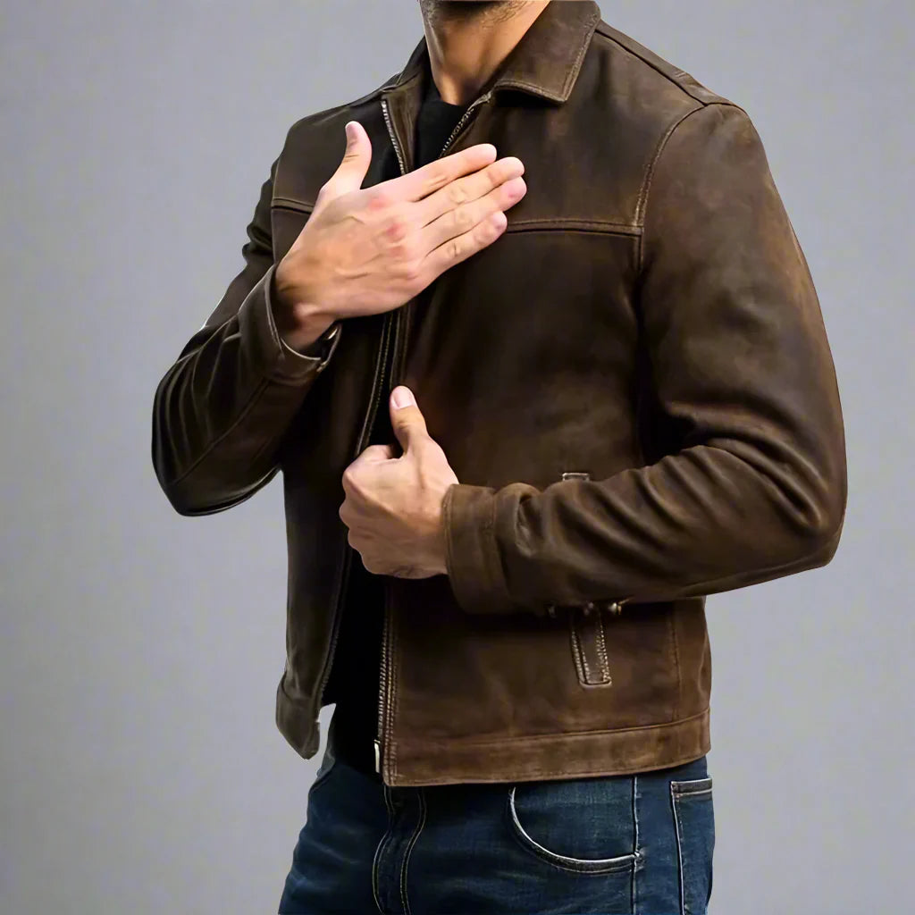 Discover our men’s zip-up leather jacket from Hugh & Clark– the perfect blend of timeless style and modern functionality. Designed to provide both comfort and elegance, this essential wardrobe piece will elevate your look – whether in everyday outfits or during elegant outings.